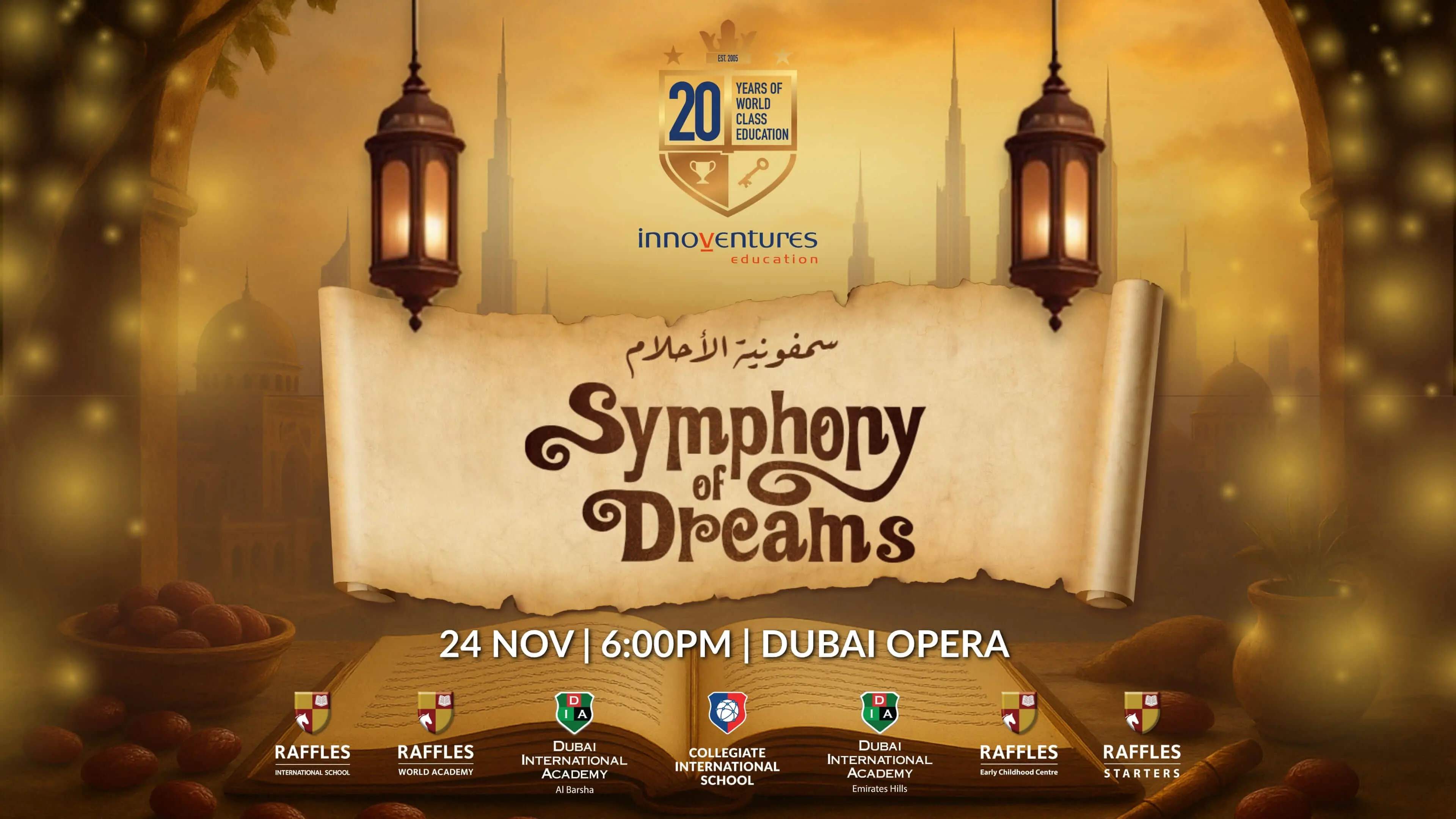 Step into an evening of wonder as over 550 talented students from across our Innoventures schools bring to life “Symphony of Dreams”—a dazzling celebration of music, theatre, and dance on the iconic stage of the Dubai Opera.